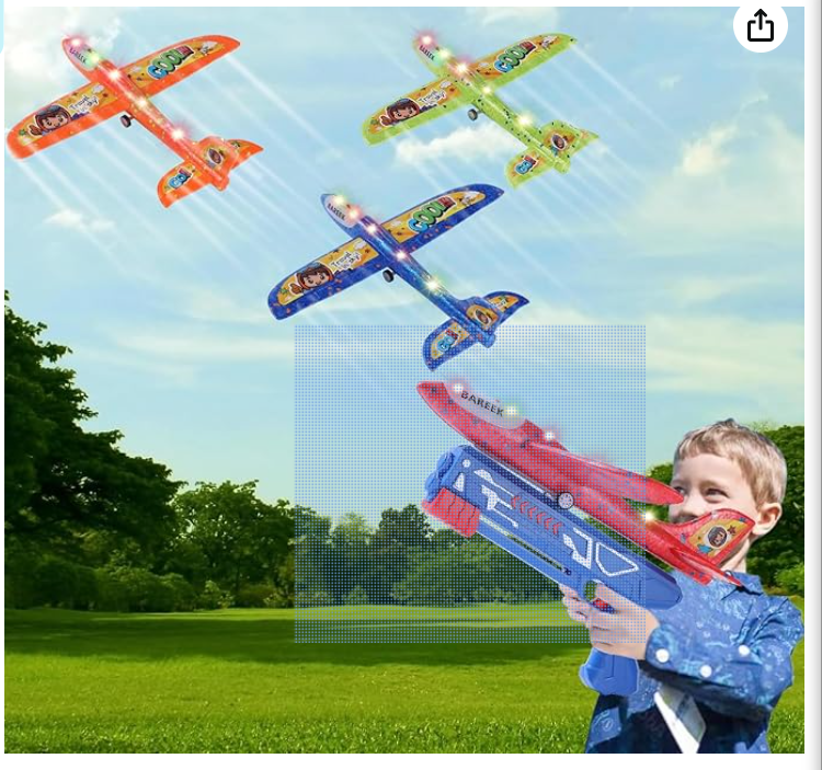 BAREEK 3 Pack Airplane Launcher Toy for Kids Led Light Foam Glider with Plane Launcher for Playing Outdoor Flying Toy for 3 4 5 6 7 8 9 10 11 12 Old Boys Girls Gift and Presents