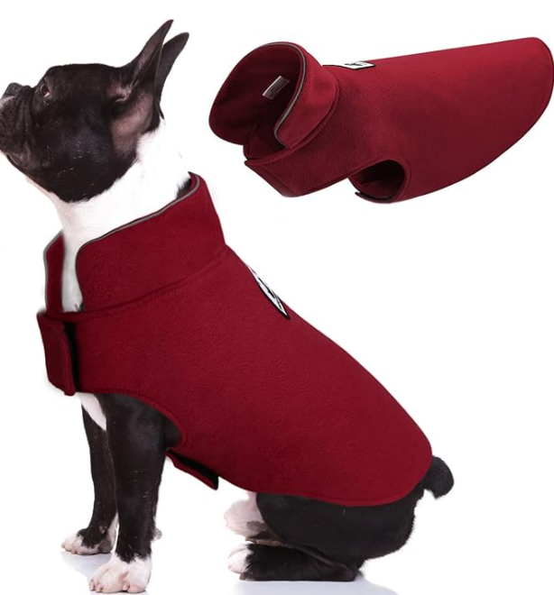 DENTRUN Windproof Winter Warm Fleece Small Dog Coat Reversible Puppy Jacket Reflective Soft Pet Vest, Cold Weather Dog Sweater Apparel Leash Access Overcoat for Small Breeds, Burgundy, S o