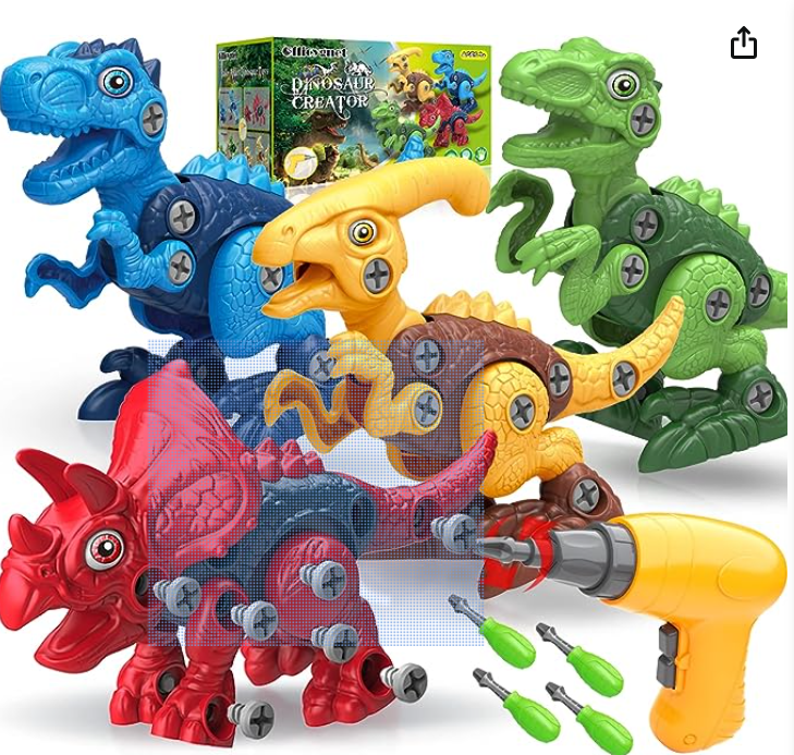 Dinosaur Toys for 3, 4, 5, 6, 7 Year Old Boys, Take Apart Toys with Electric Drill for Kids, STEM Educational Construction Building Toys, Ideal Xmas Birthday Gift, Incl Tyrannosaurus Rex Triceratop