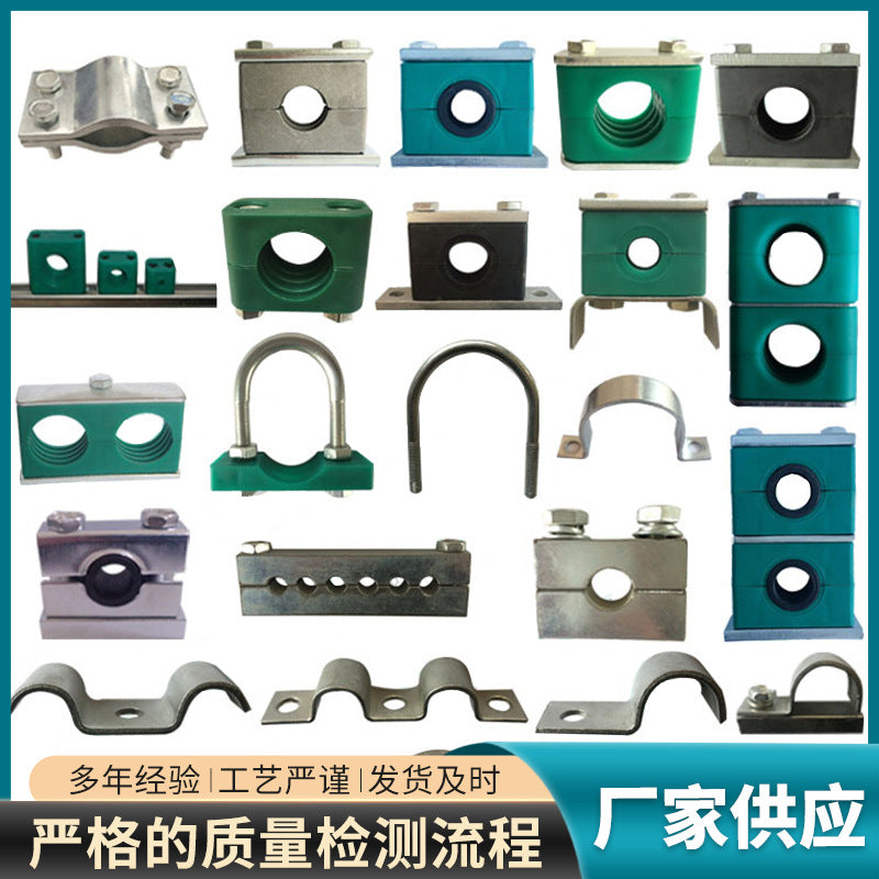 Gold pipe clamps, pipe clips, saddle clamps, various types of bolt pipe clamps