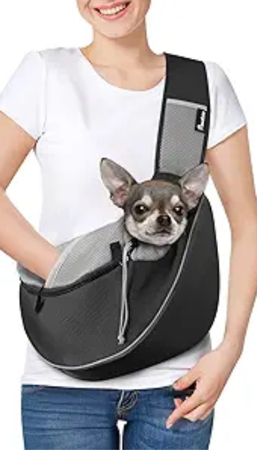 Pawaboo Dog Sling Carrier, Dog Papoose with Zipper Touch Pocket, Hand Free Breathable Mesh Puppy Carrier, Crossbody Satchel Dog Purse with Adjustable Strap for Outdoor Travel, Black, Small