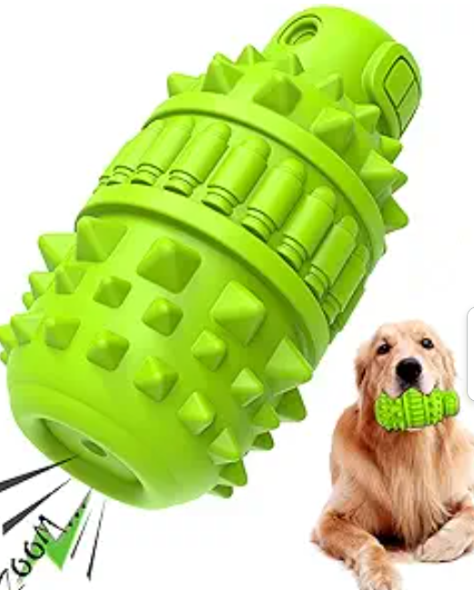 PIFFZEDO Dog Toy for Aggressive Chewer Large Medium Nearly Indestructible Super Chew Squeaky Birthday Toy Toothbrush Interactive Tough Durable Dog Toys Natural Rubber(Green,Large)