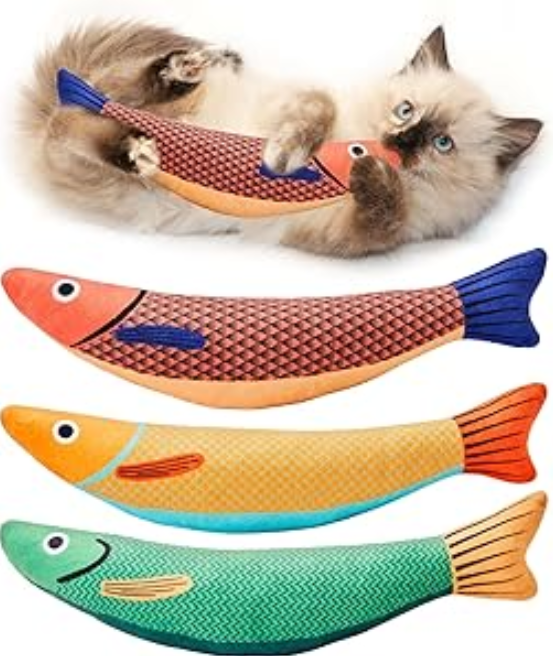 Potaroma Cat Toys Saury Fish, 3 Pack Catnip Crinkle Sound Toys Soft and Durable, Interactive Cat Kicker Toys for Indoor Kitten Exercise 9.4 Inches for All Breeds