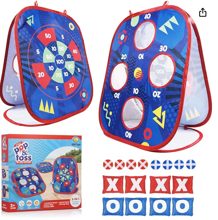 USA Toyz Pop n Toss Bean Bag Toss Game for Kids - 3in1 Kid Bean Bag Toss Cornhole Game Set, Sticky Ball Toss, Tic Tac Toe, Toddler Outdoor Backyard Toys Indoor Outside Toy for Boys or Girls