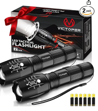 Victoper LED Flashlight 2 Pack, Bright 2000 Lumens Tactical Flashlights High Lumens with 5 Modes, Waterproof Focus Zoomable Flash Light for Outdoor, Gifts for Valentine's Day for Men Women Adults