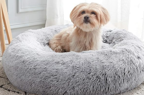 WESTERN HOME WH Calming Dog & Cat Bed, Anti-Anxiety Donut Cuddler Warming Cozy Soft Round Bed, Fluffy Faux Fur Plush Cushion Bed for Small Medium Dogs and Cats (20"/24"/27"/30")