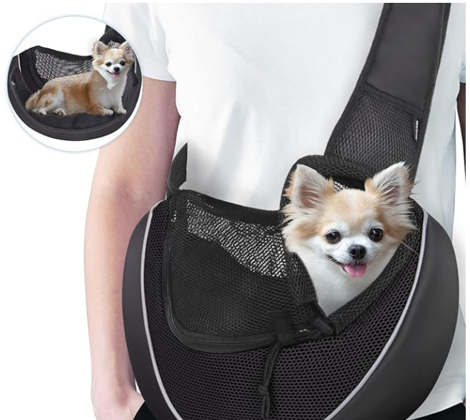 WOYYHO Small Dog Sling Carrier, Breathable Pet Cat Puppy Dog Carrier Sling for Small Medium Dogs, Adjustable Cat Dog Carrying Sling for Travel with Bottom, Black, Small